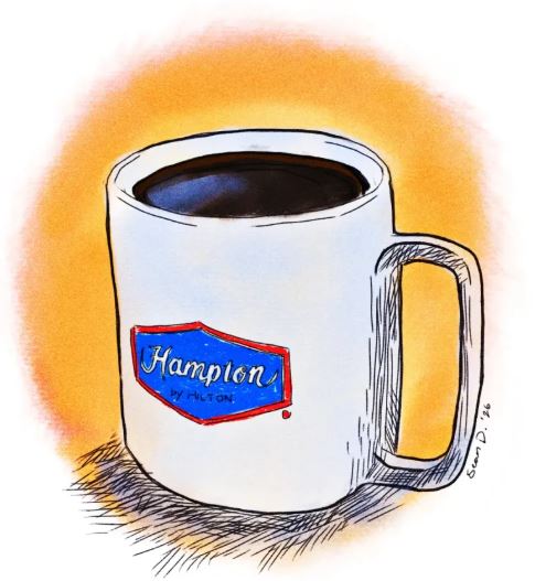 The next morning, there must have been fifty or sixty Mennonite teenagers in the lobby, standing in line, waiting for their complimentary breakfasts.